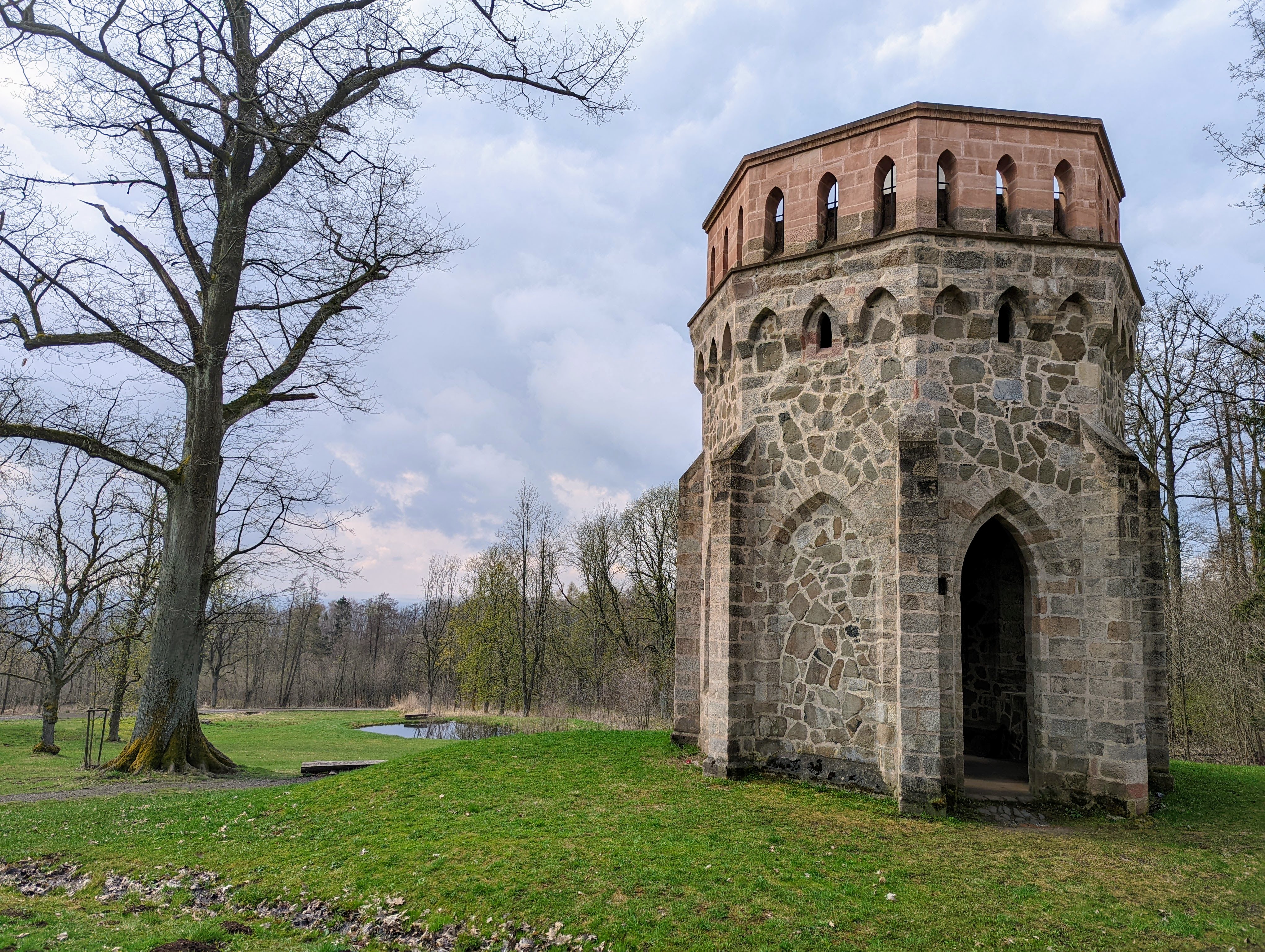 Alainova věž je novogotická věž, která původně sloužila majitelům panství jako posed, takže daleké vyhlídky do kraje nečekejte, ale je spolu s okolní mýtinou pěkným zákoutím, které stojí za návštěvu.