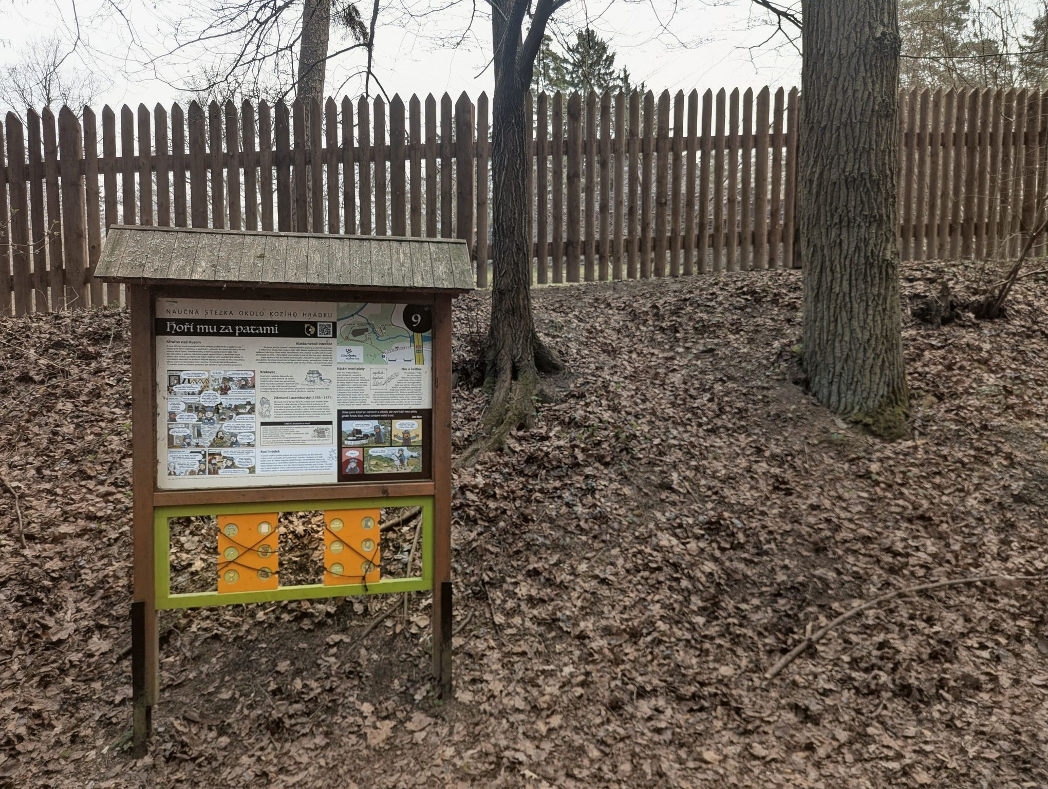 Procházka lesem kolem zbytků hrádku, kde pobýval Jan Hus. Mají tu o tom pěkně udělanou naučnou stezku s komiksy.