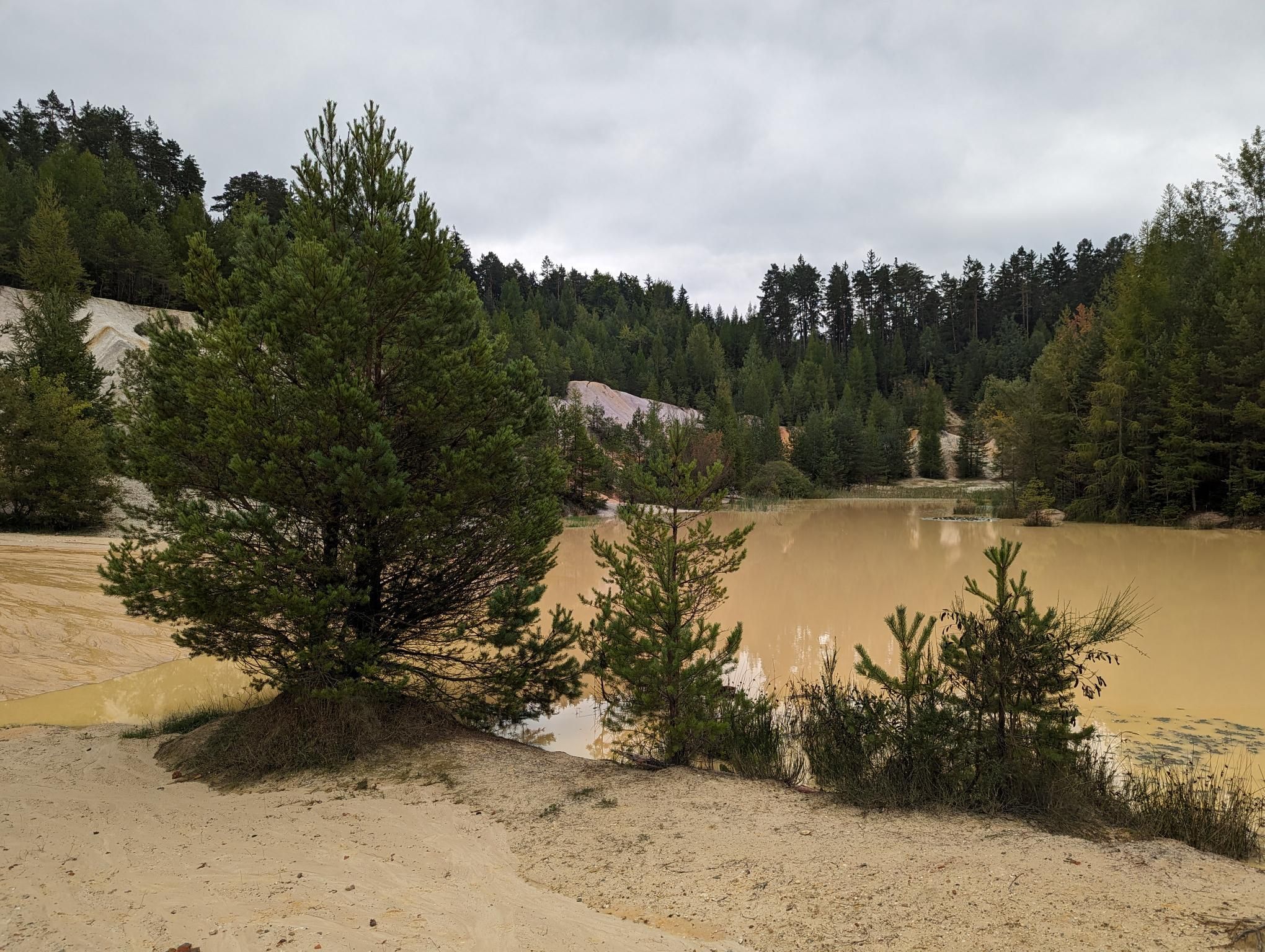Zpátky je to stejnou cestou a trasa vás zavede do starého lomu Seč. Zaujmou místy barevné stěny a jezírko na dně lomu.