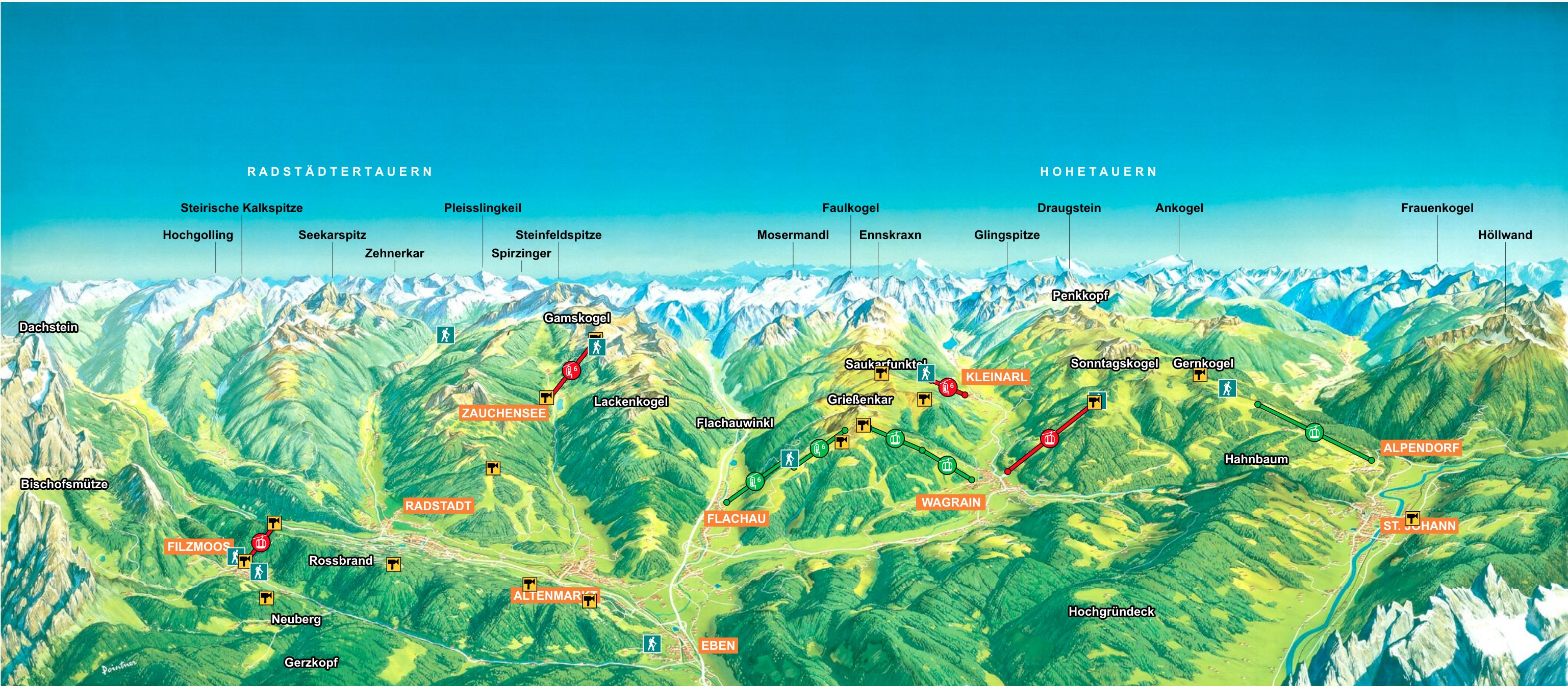 Jsou zde tři velké části. Údolí Gastein, Hochkönig a oblast sdružující se pod Snowspace (okolí Wagrainu). Dále pak jednotlivá střediska jako Zauchersee, Rauris či Filzmoos.