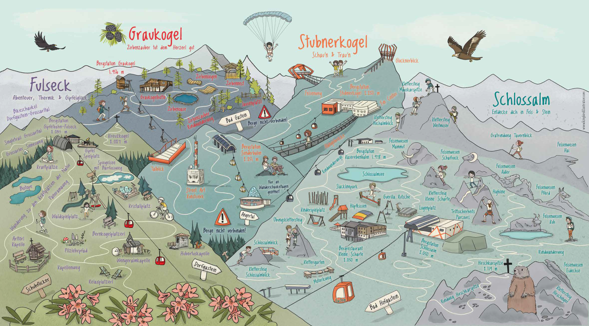Pro děti asi nejzajímavější oblast je Snowspace a jejich 12 Peak Adventure Card. Tato karta obsahuje i Geisterberg a Grafenberg, které od roku 2025 nejsou v Salzburgerland Card.