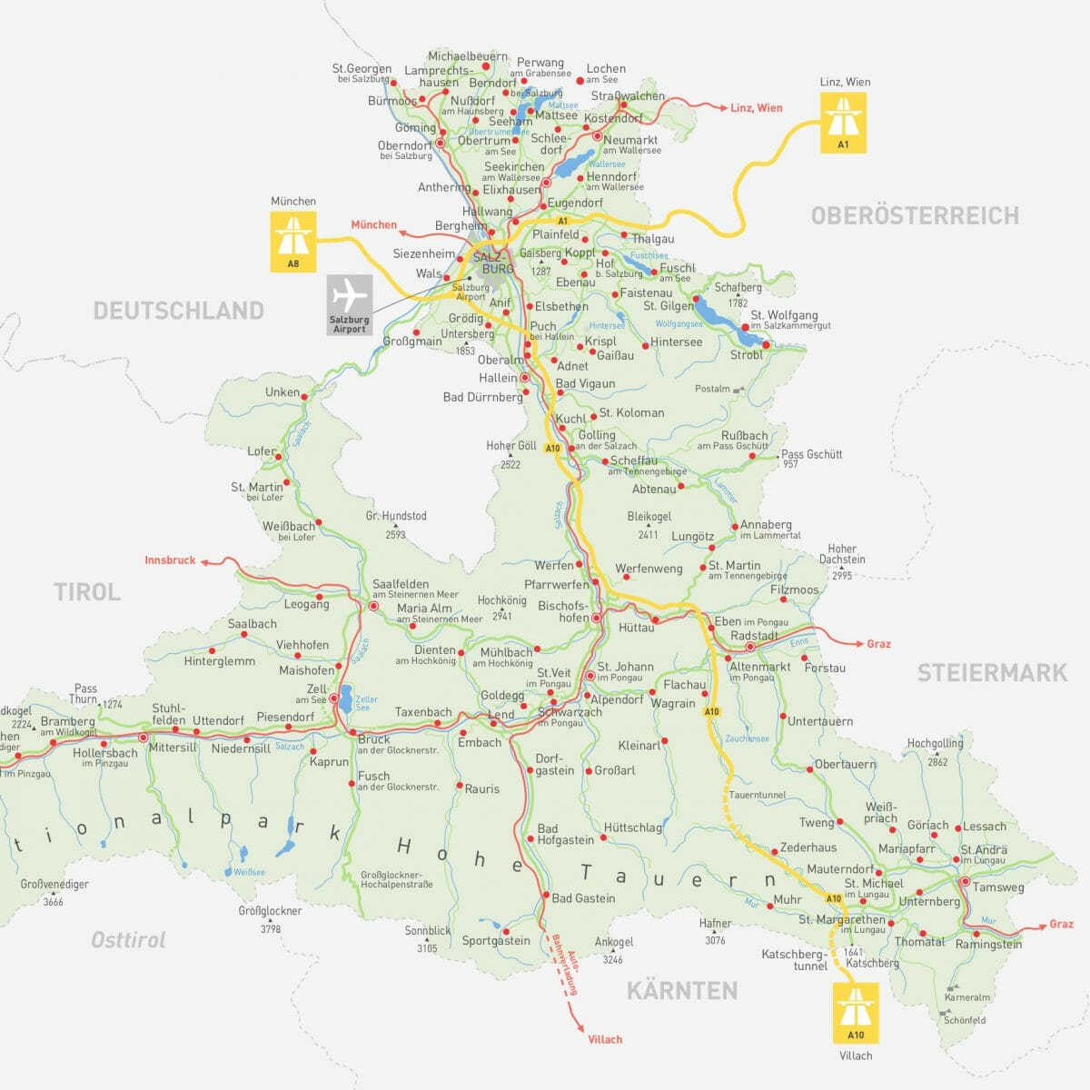 Pokud chcete jezdit po této části Salzburska, je ideální se ubytovat někde v okolí Sankt Johann im Pongau, který je ve středu oblasti a všude se dostanete do hodiny jízdy.