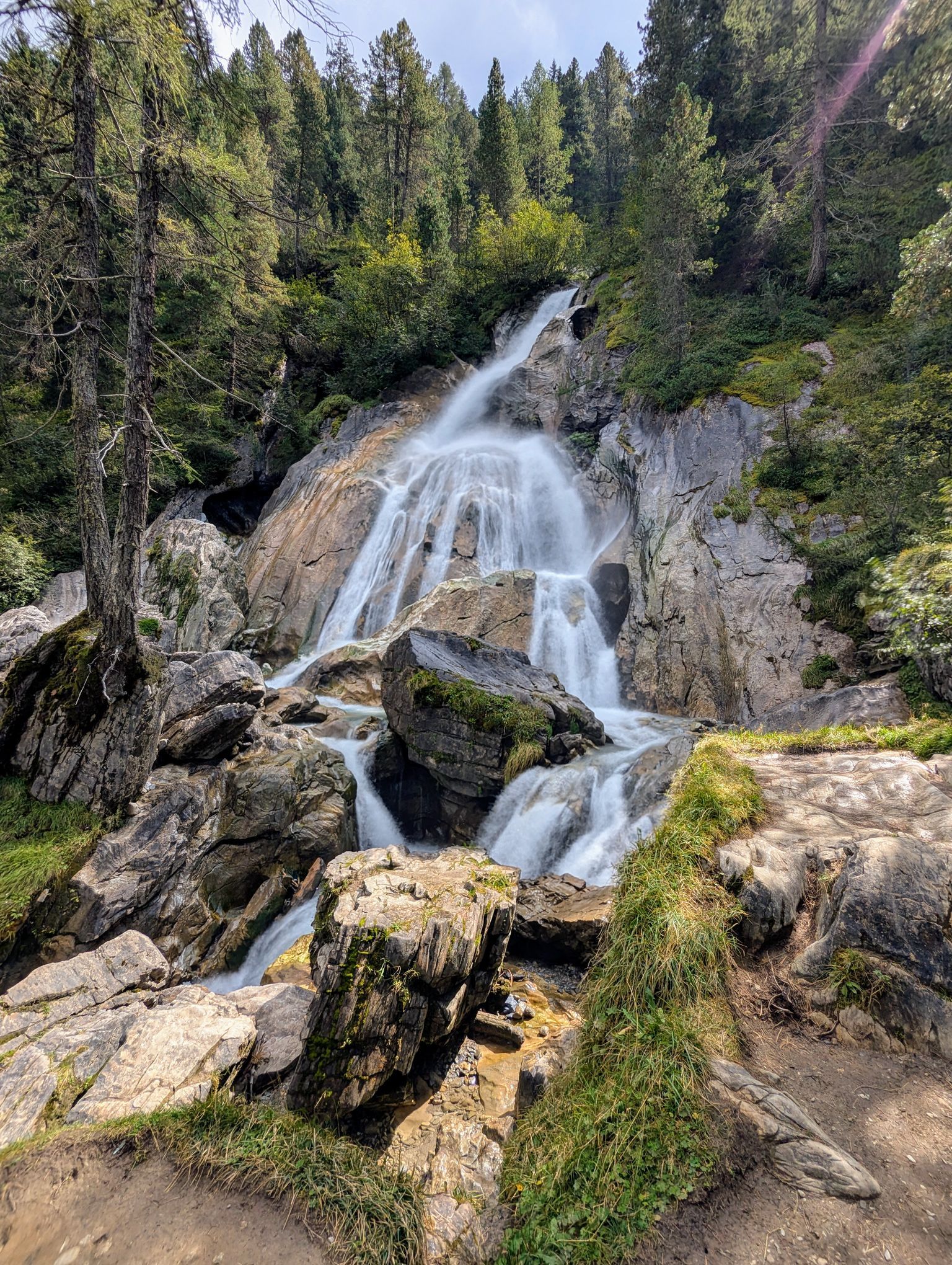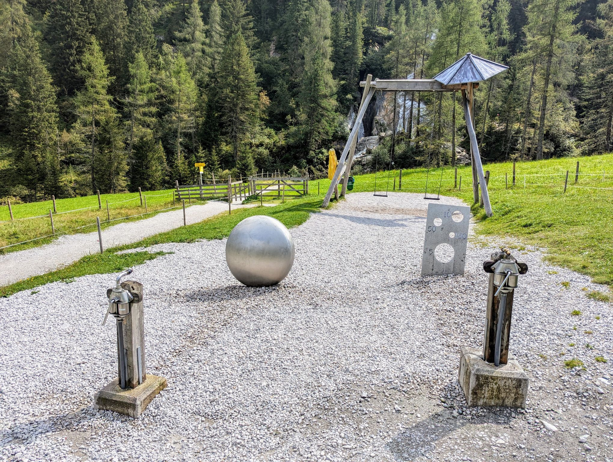 Wasserwelt je popravdě asi nejméně zajímavý ze stezek TuxWelten. Zejména proto, že dlouho obchází obří parkoviště pod Hintertuxem. A některá zastavení jsme ani nenašli. Za navštívení však stojí ta v blízkosti lanovky. Určitě se zajděte podívat k vodopádu, poblíž kterého je zákeřná houpačka a vodní stříkačky.